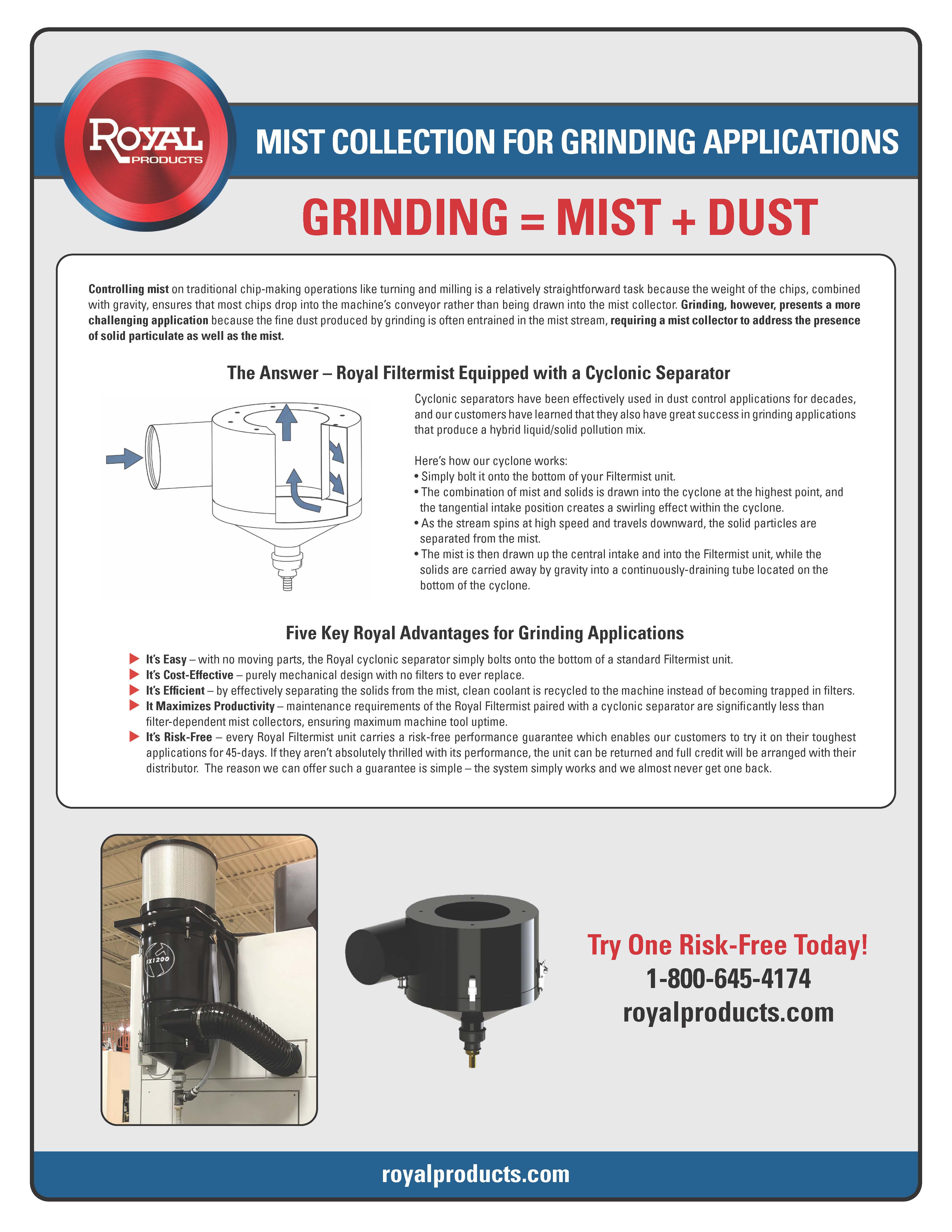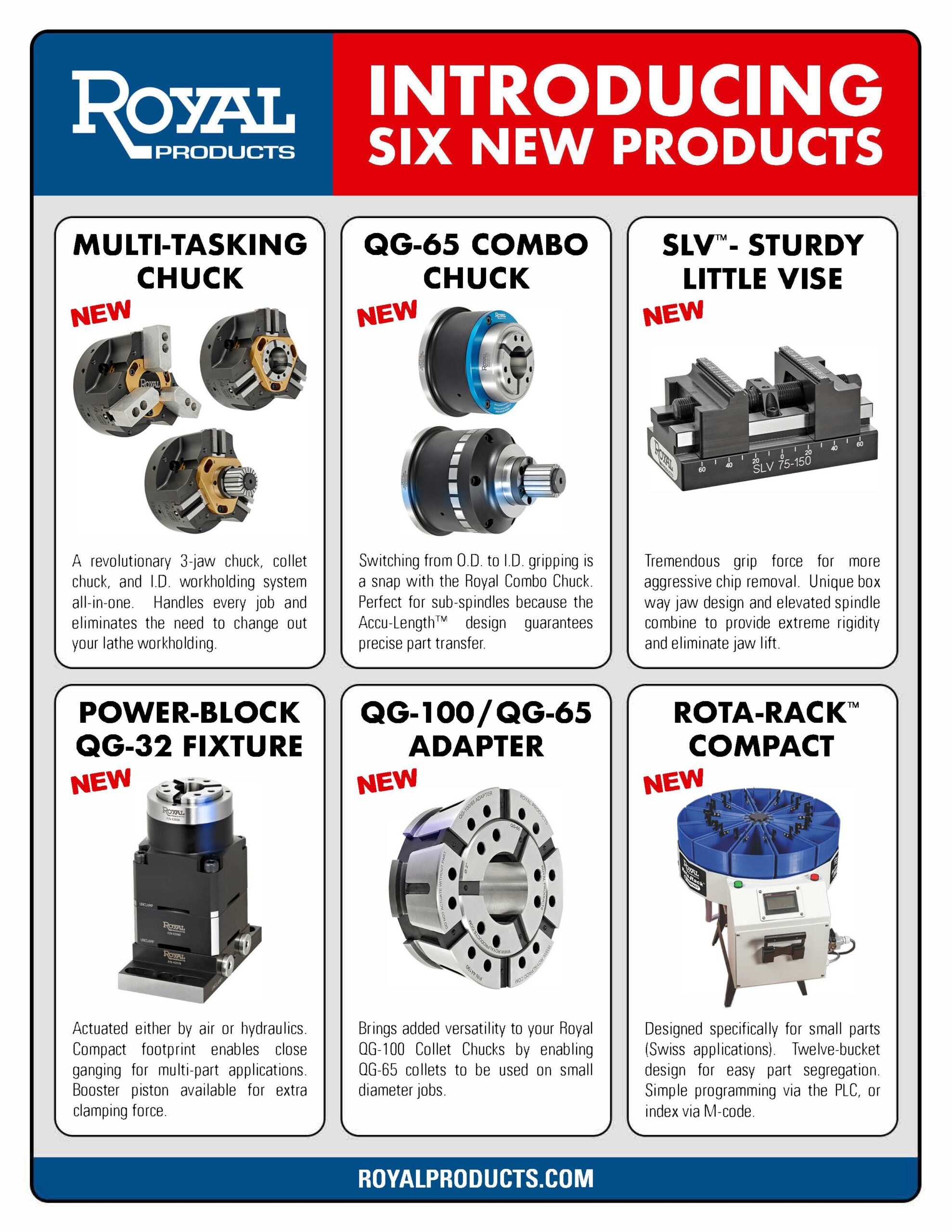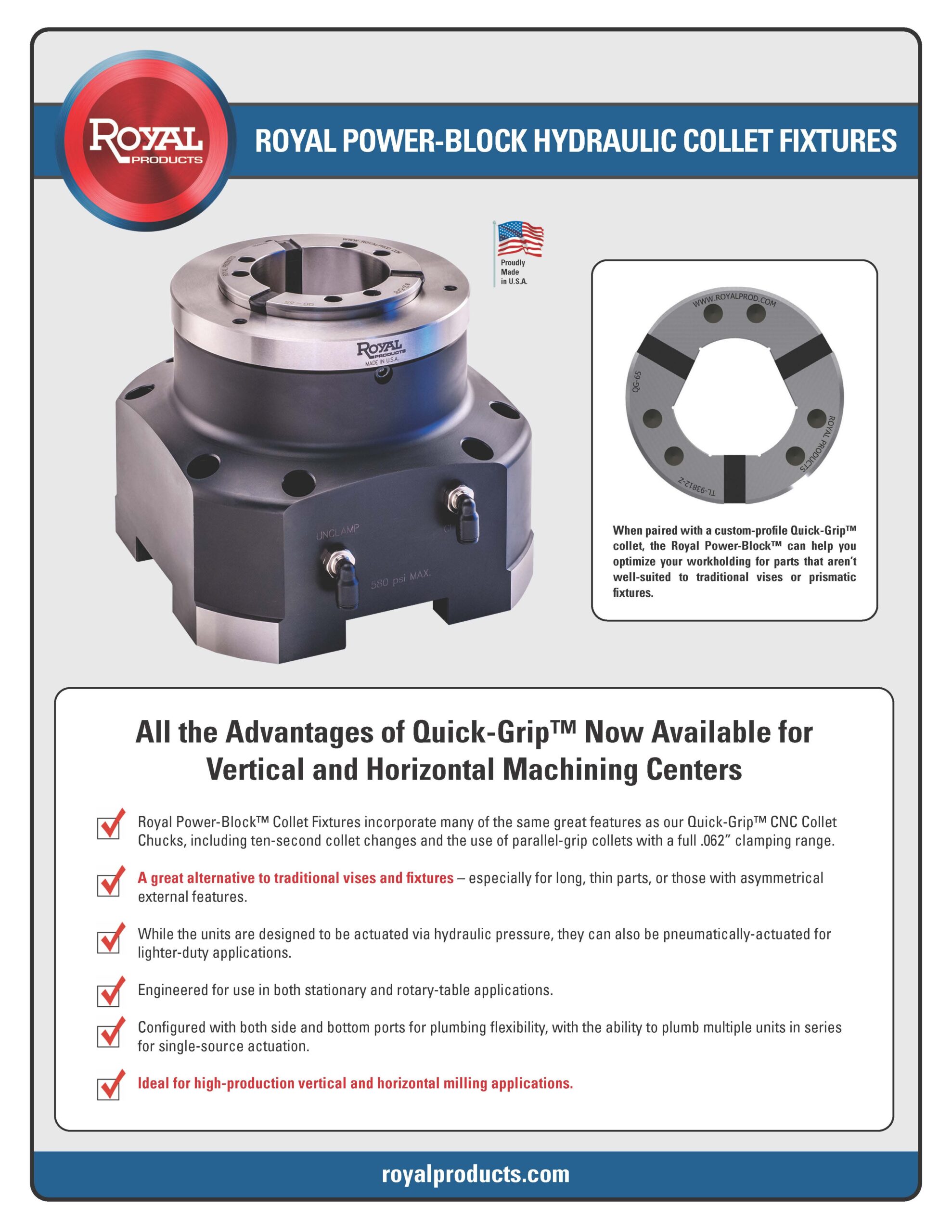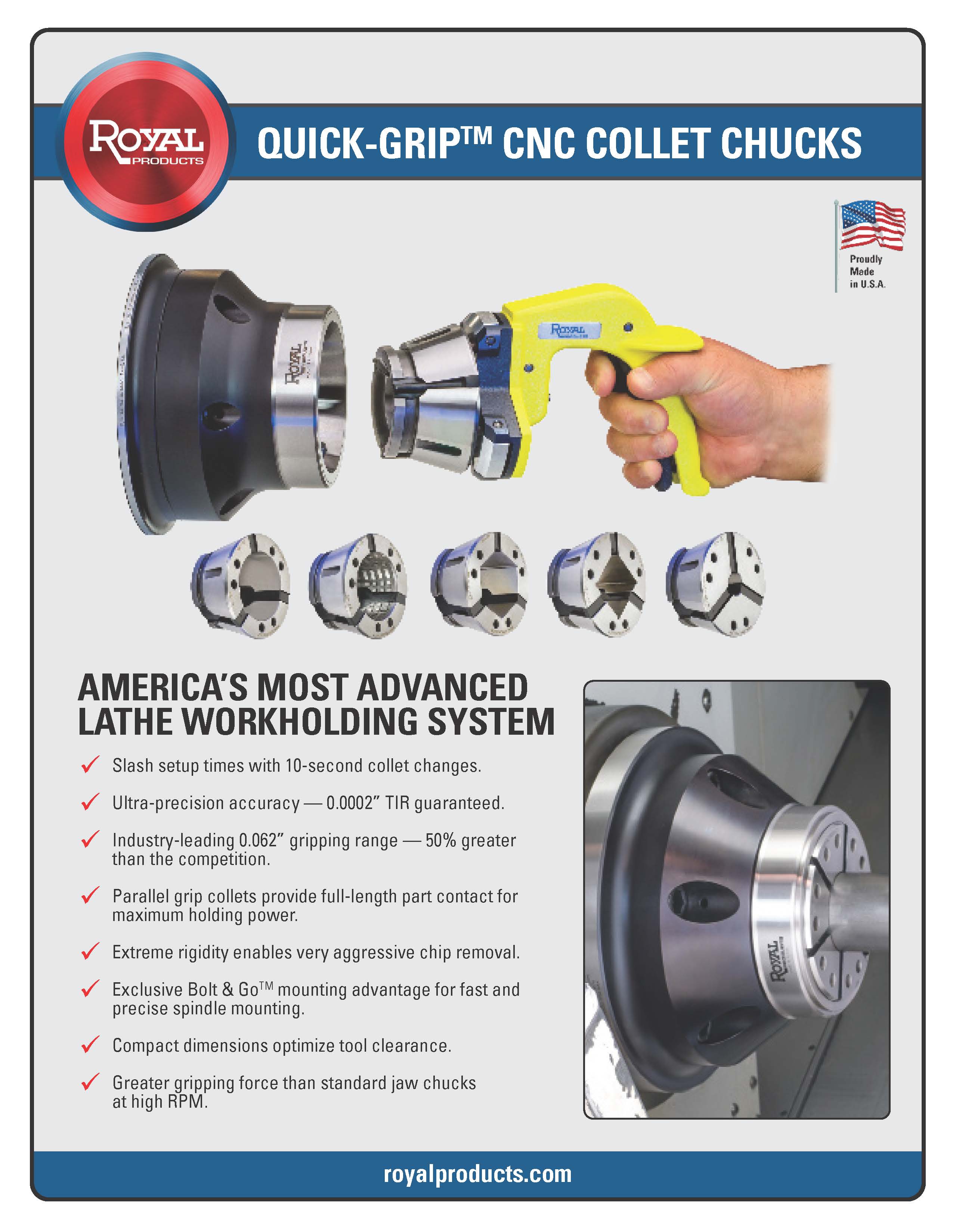 Royal Literature Master Catalog Please fill out the form below to receive your free copy of our new 180-page master catalog and to be added to the Royal mailing list. You may also view the entire 2025 Catalog PDF. First Name Last Name Company Address City State—Please choose an option—Non-USAlabamaArizonaArkansasCaliforniaColoradoConnecticutDelawareFloridaGeorgiaIdahoIllinoisIndianaIowaKansasKentuckyLouisianaMaineMarylandMassachusettsMichiganMinnesotaMississippiMissouriMontanaNebraskaNevadaNew HampshireNew JerseyNew MexicoNew YorkNorth CarolinaNorth DakotaOhioOklahomaOregonPennsylvaniaRhode IslandSouth CarolinaSouth DakotaTennesseeTexasUtahVermontVirginiaWashingtonWest VirginiaWisconsinWyoming Zip Country Phone Email Address Products of Interest (Check all that apply) GeneralFiltermist Mist CollectorsCNC Collet Chucks and ColletsMTC Multi-Tasking ChuckQG Combo Chuck Collet FixturesI.D. WorkholdingSLV Self-Centering VisesZero-Point Workholding Roto-Rack Parts AccumulatorsLive CentersCNC Bar PullersOther Comments (optional) 75+48=? New Products - Flyer MTC™ - Multi-Tasking Chuck Combo Chuck SLV™ - Sturdy Little Vise Quick-Grip™ Workholding Low-Profile Workholding I.D. Workholding Deburring Tools Rota-Rack™ CNC Bar Pullers Live and Dead Centers Z-Lock™ Workholding Machine Shop Accessories Milling & Drilling Tooling Solutions Filtermist Mist Collectors Quick-Grip Workholding Power-Block™ Flyer CNC Expanding Mandrel Flyer Rota-Rack™ Flyer Z-Lock™ Quick-Change Workholding New! Filtermist Flyer Filtermist Grinding Flyer Robodrill Mist Collection Made Easy New! Okuma Filtermist Mounting Bracket New!