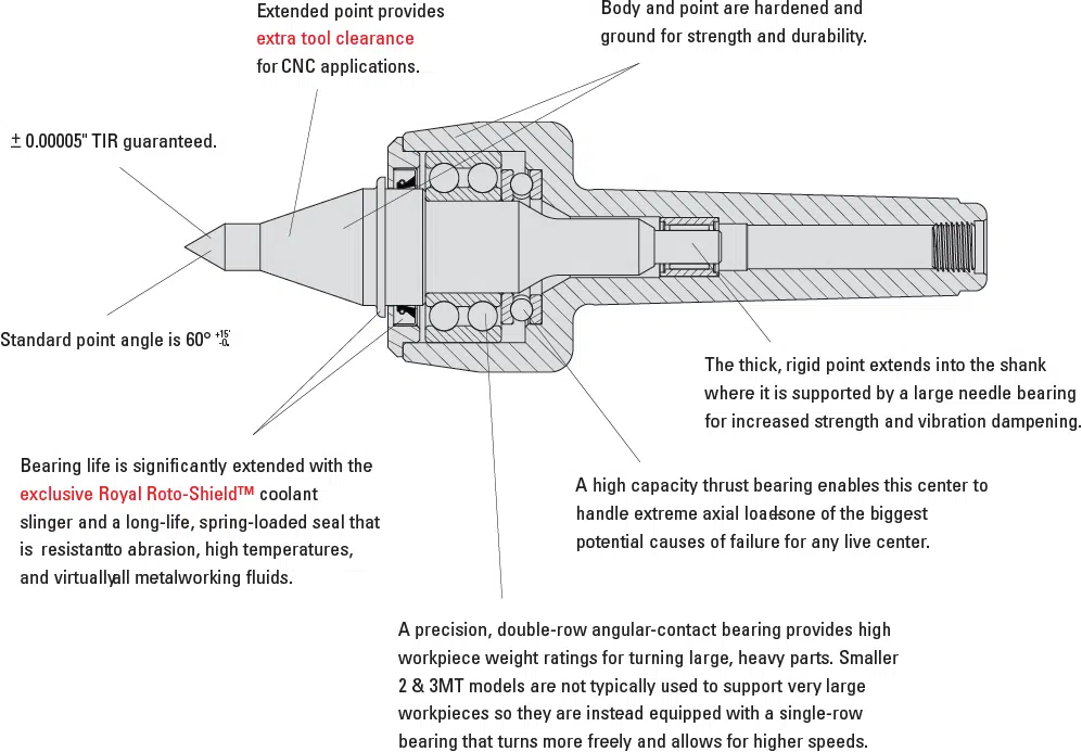 - One of our most popular models – an excellent heavy-duty live center designed to handle almost all manual and CNC turning jobs.