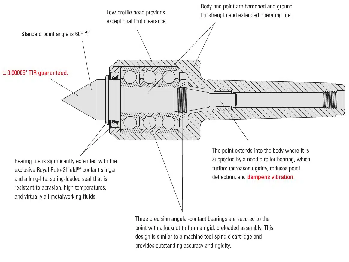 Royal High-Precision Quad-Bearing Live Centers – Standard Point