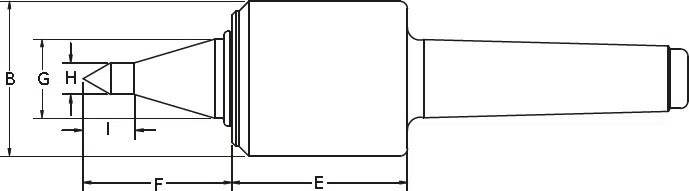 Taper | B | E | F | G | H | I | MAX. SUGGESTED RPM | WEIGHT OF WORKPIECE (lbs.) | THRUST LOAD (lbs.) | PART NUMBER | PRICE | |