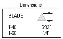 - Includes one T-40 blade. These blades are similar in size to the T-80 and T-120 but they are only half as long.