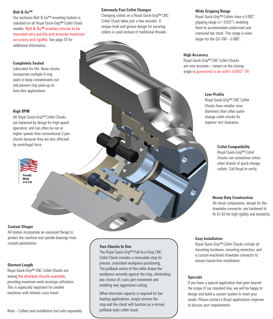 Royal Quick-Grip™ Pull-to-a-Stop CNC Collet Chuck